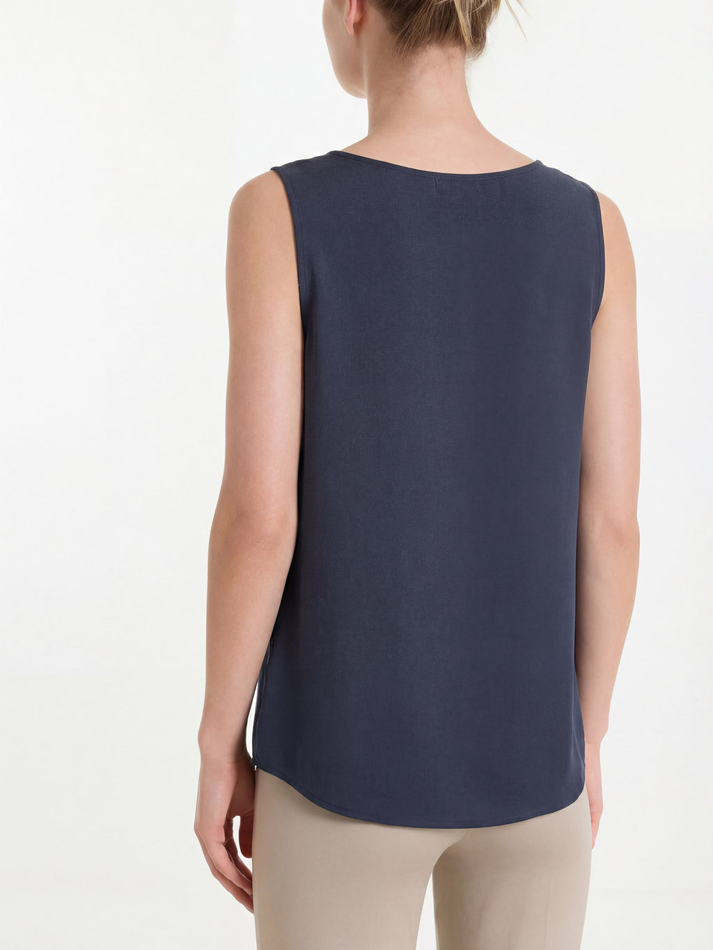 Hergestellt aus Voile Stretch, einem fein gewebten Voile mit leichtem Griff, mit einer kompakten und dennoch luftigen Konstruktion und einem elastischen Anteil, der die Tragbarkeit und den Komfort erhöht.