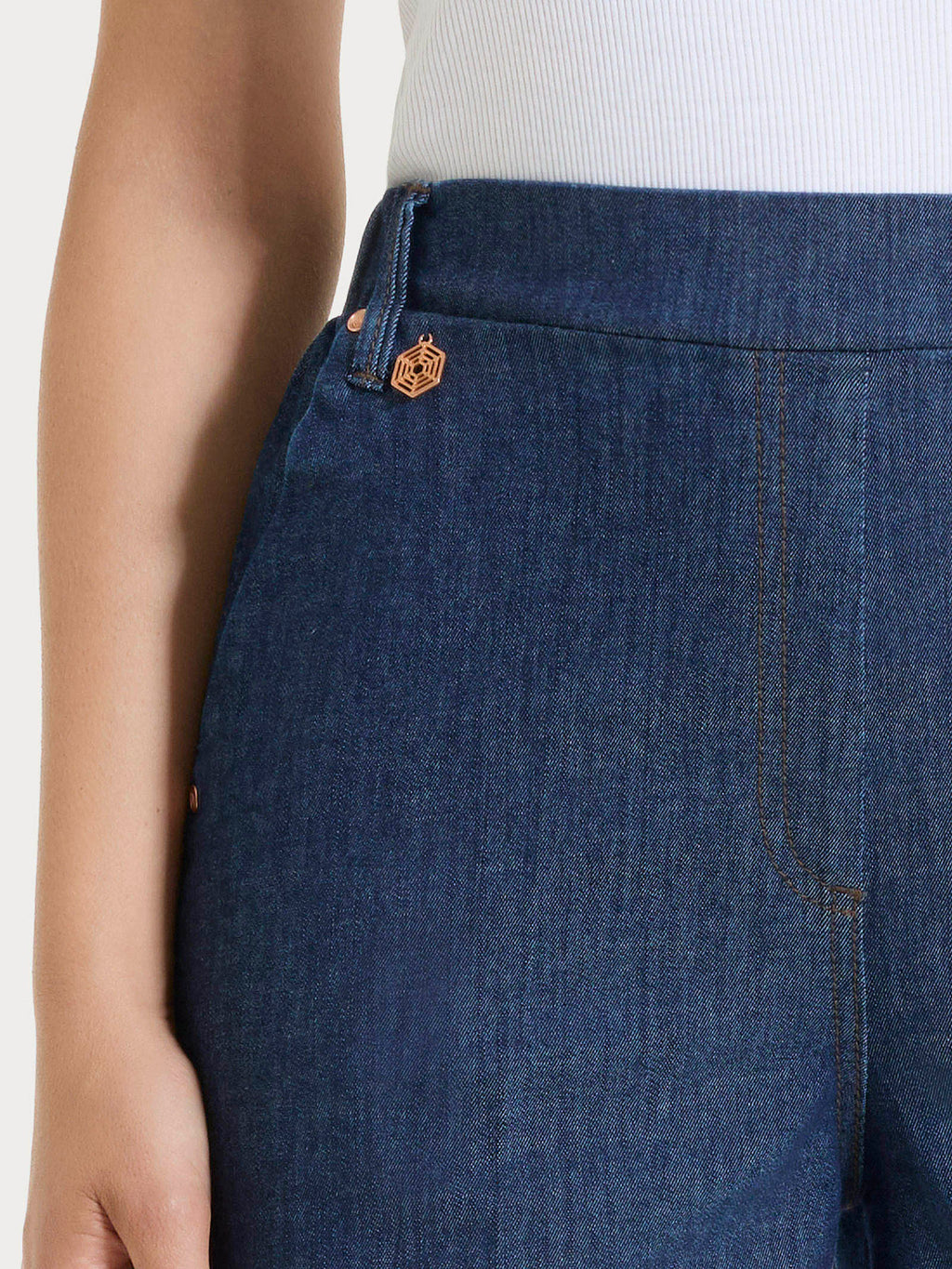 Dieses Modell hat einen flachen, elastischen Bund mit Gürtelschlaufen, die es Ihnen ermöglichen, Ihren persönlichen Stil zu unterstreichen, und praktische französische Seitentaschen.
