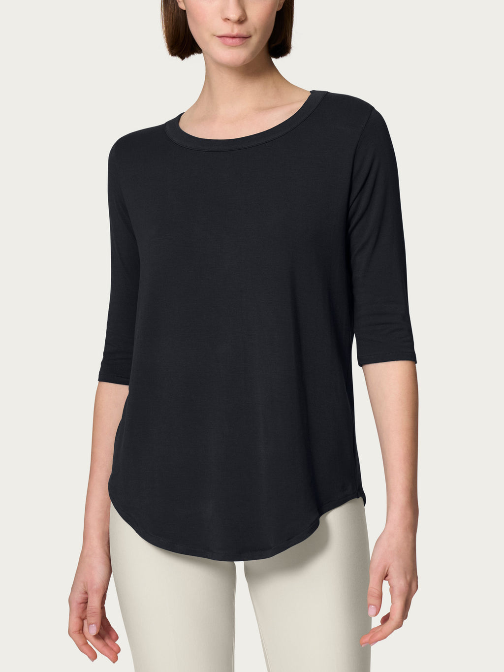 mit Rundhalsausschnitt und 3/4-Ärmeln.