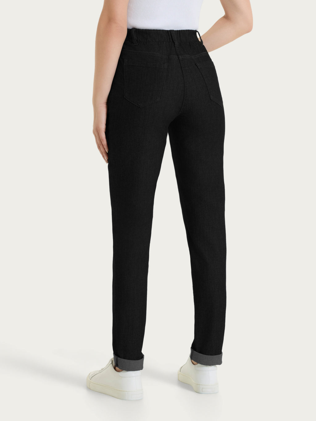 Dieses Modell ist mit einem flachen, elastischen Bund ausgestattet und hat ein klassisches 5-Pocket-Design mit zwei Vordertaschen, einer Münztasche und zwei Gesäßtaschen, die alle mit verstärkten Nähten für zusätzliche Stabilität ausgestattet sind.