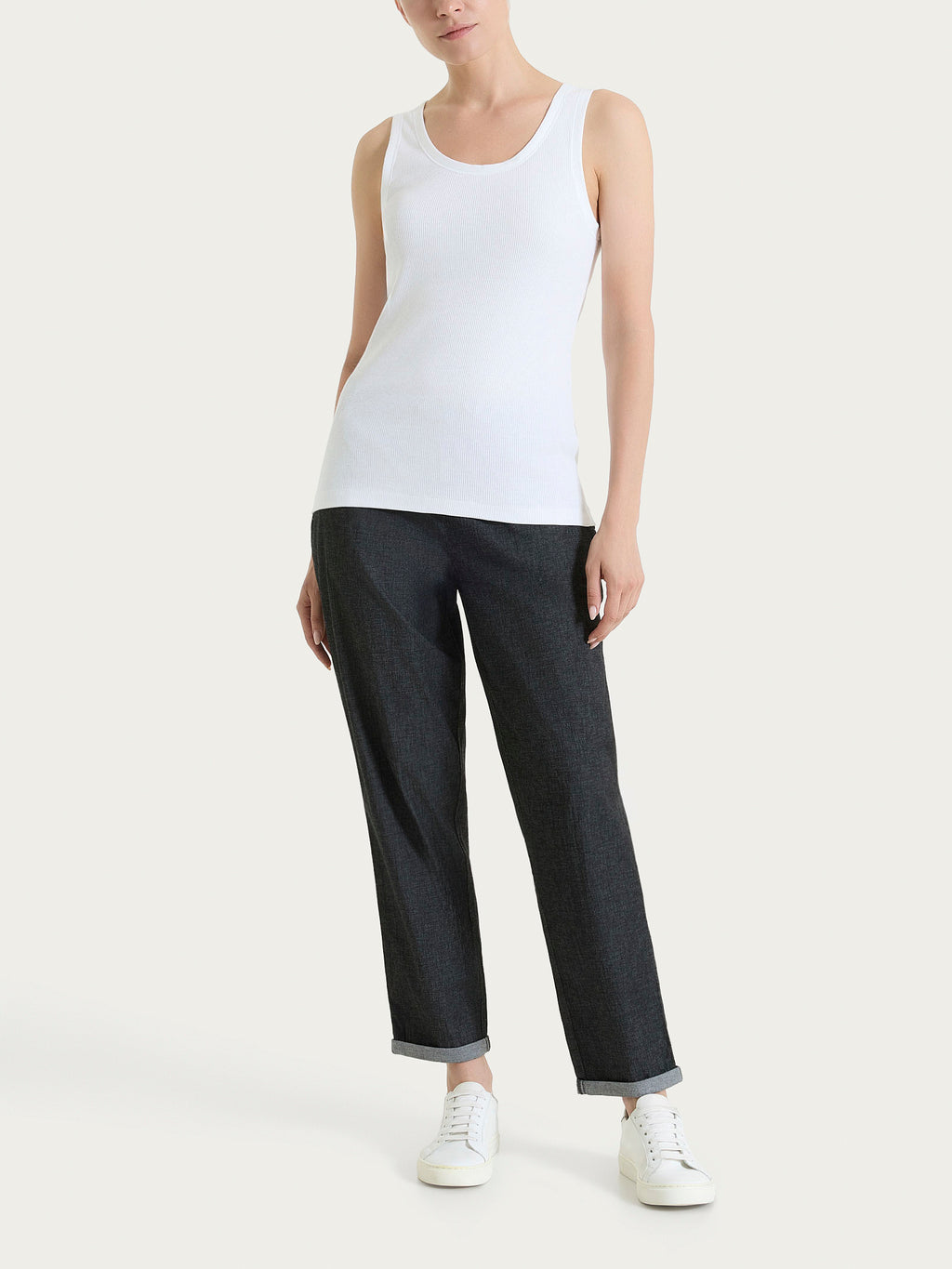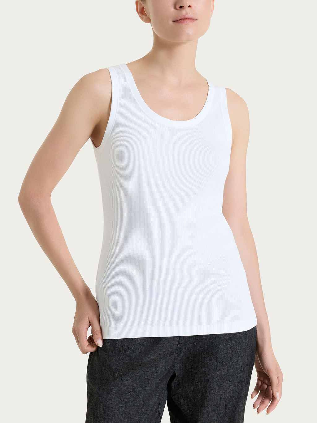 Breitschultriges Tank-Top aus reiner Rippenbaumwolle.Dieses Kleidungsstück gehört zur Linie 100 Cotton mit einem klassischen Schnitt aus 2x1 Rippstrick aus reiner Baumwolle, der mehr Elastizität un...