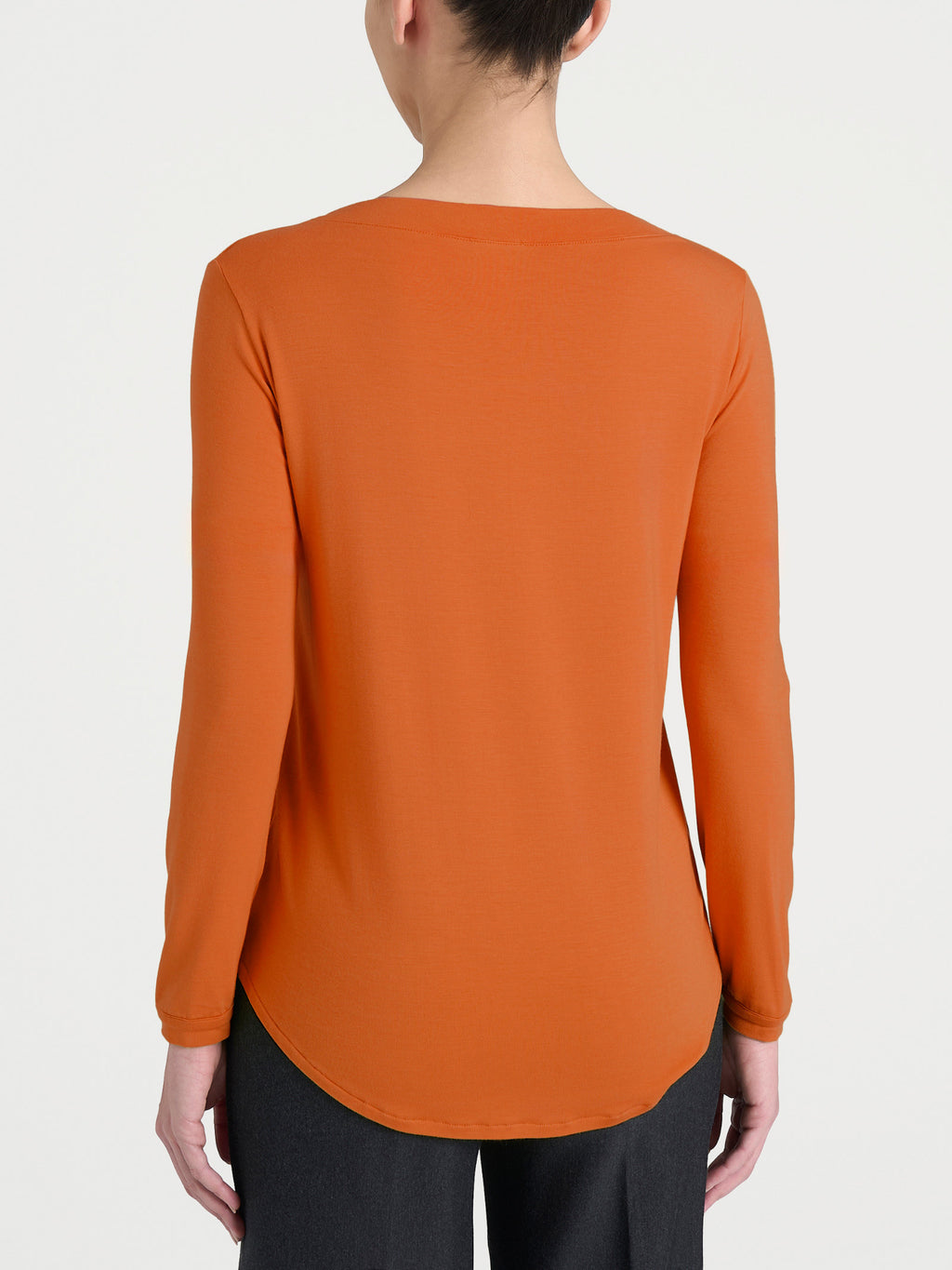 Langärmeliges Damen-T-Shirt mit Bootskragen.