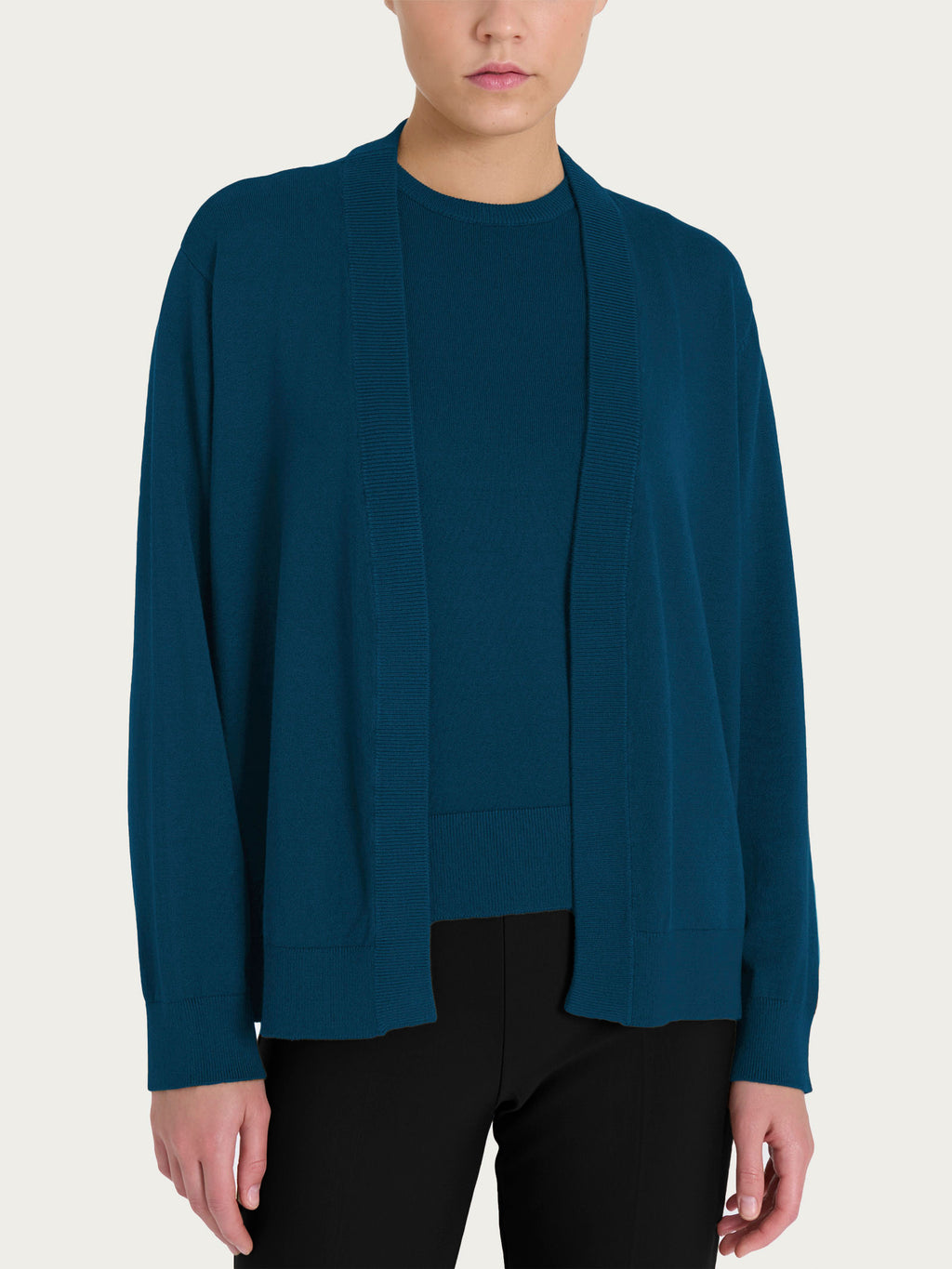 Unverzichtbar und raffiniert, die offene Strickjacke ist die richtige Wahl, um jeden Moment des Tages elegant zu gestalten, von leger bis formell.