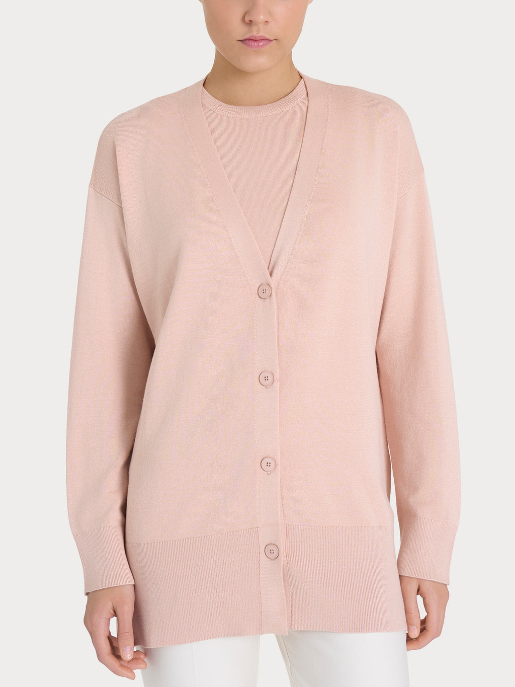 Dieses Kleidungsstück zeichnet sich durch einen praktischen Frontverschluss mit 4 Knöpfen aus und wird durch einen 1x1-Rippenbesatz am unteren Saum und an den Ärmelbündchen definiert, der dem Kleidungsstück einen unverwechselbaren Hauch von Eleganz verleiht.