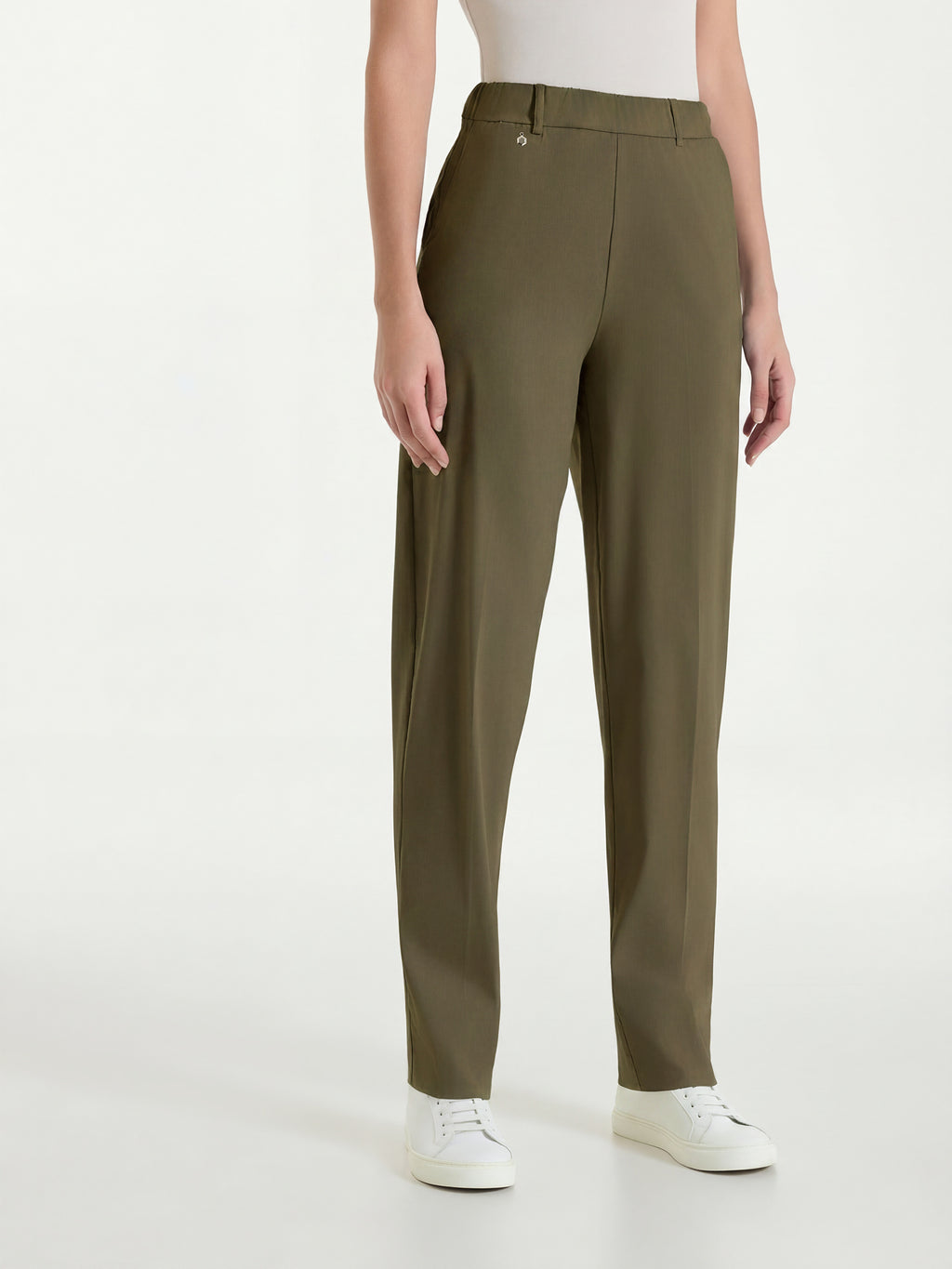 Karottenhose für Damen mit taillierter Passform, das leicht weite Bein verjüngt sich zum Knöchel hin.