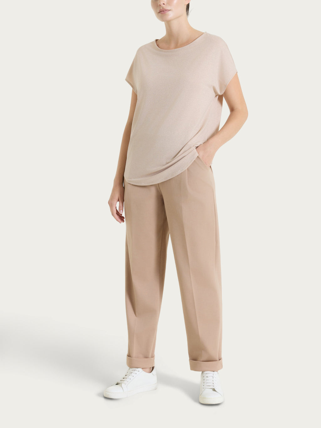 Karottenhose für Damen mit konisch zulaufender Passform, das leicht weite Bein verjüngt sich zum Knöchel hin mit verkürzter Knöchellänge.