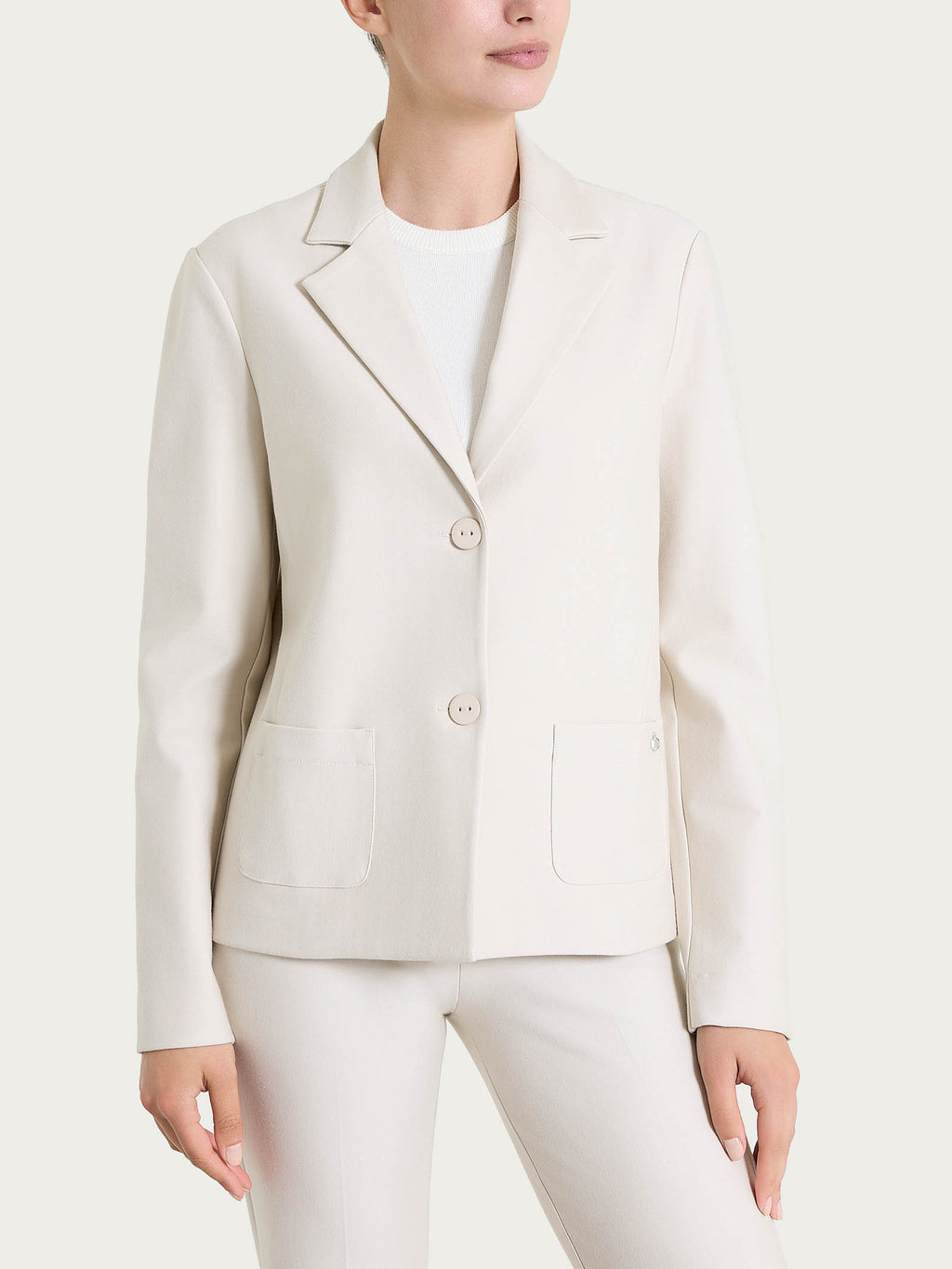 aus dem exklusiven Compact-Stoff, einem unglaublich kompakten und dehnbaren Milan-Stoff, der stets eine perfekte Passform garantiert. Ein knitterfreies und widerstandsfähiges Gewebe, das praktisch unzerstörbar ist und natürlich in der Maschine gewaschen werden kann, um maximale Praktikabilität zu gewährleisten. Er bietet außergewöhnlichen Komfort und hält auch an den kältesten Tagen warm.