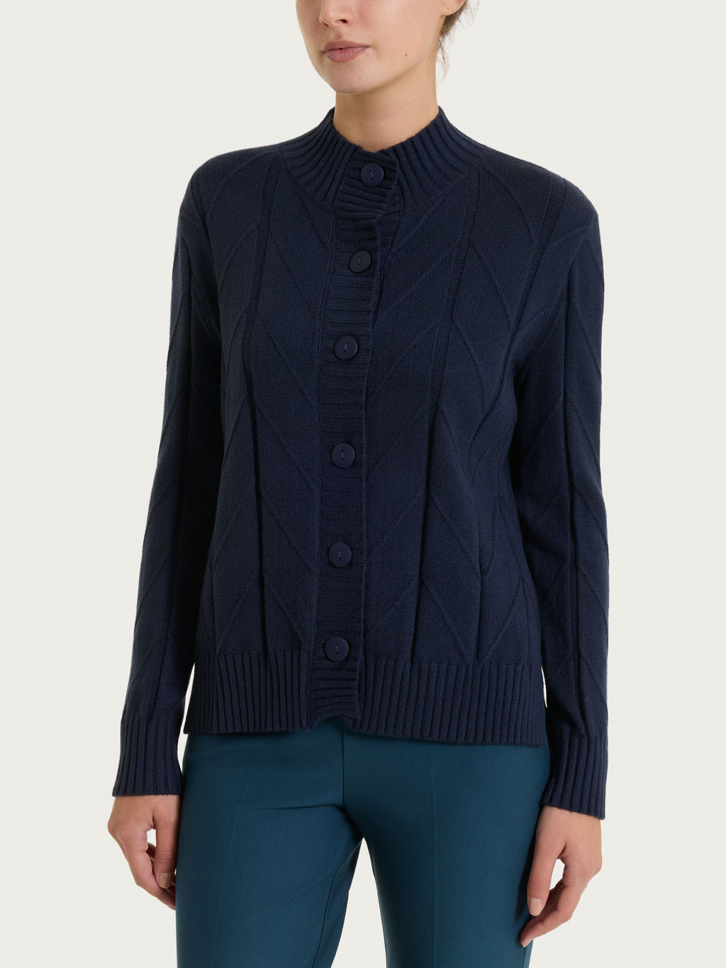 Offene Strickjacke mit Fischgrätenmuster aus Super Soft - Bleu