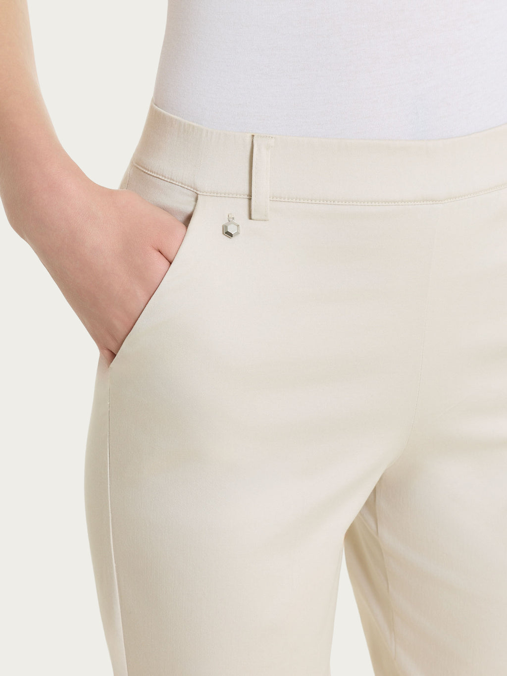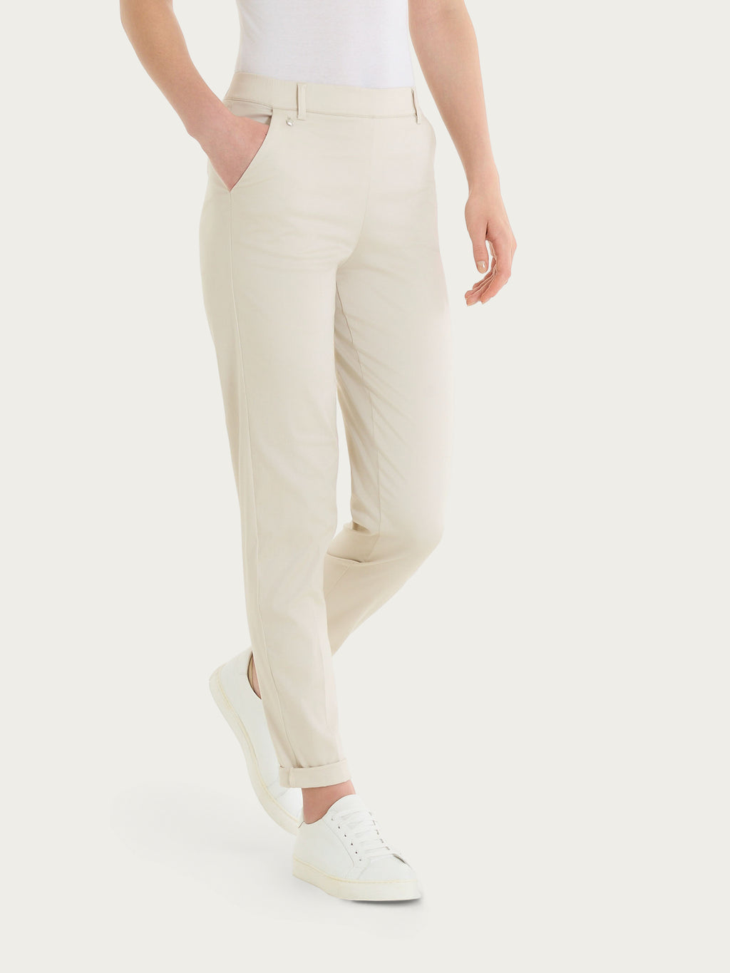 Dieses Modell ist mit einem elastischen Bund, aber mit Gürtelschlaufen ausgestattet, um Ihnen die Möglichkeit zu geben, Ihren persönlichen Stil zu unterstreichen, mit bequemen Seitentaschen im französischen Stil und Aufschlägen.