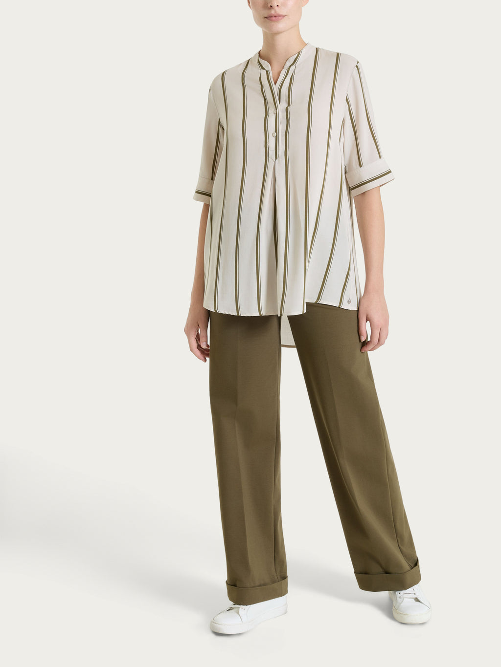 Dieses Modell ist mit einem Gummizug in der Taille und mit Taschen ausgestattet. Es ist so bequem wie eine Leggings und behält gleichzeitig die Eleganz einer Hose.