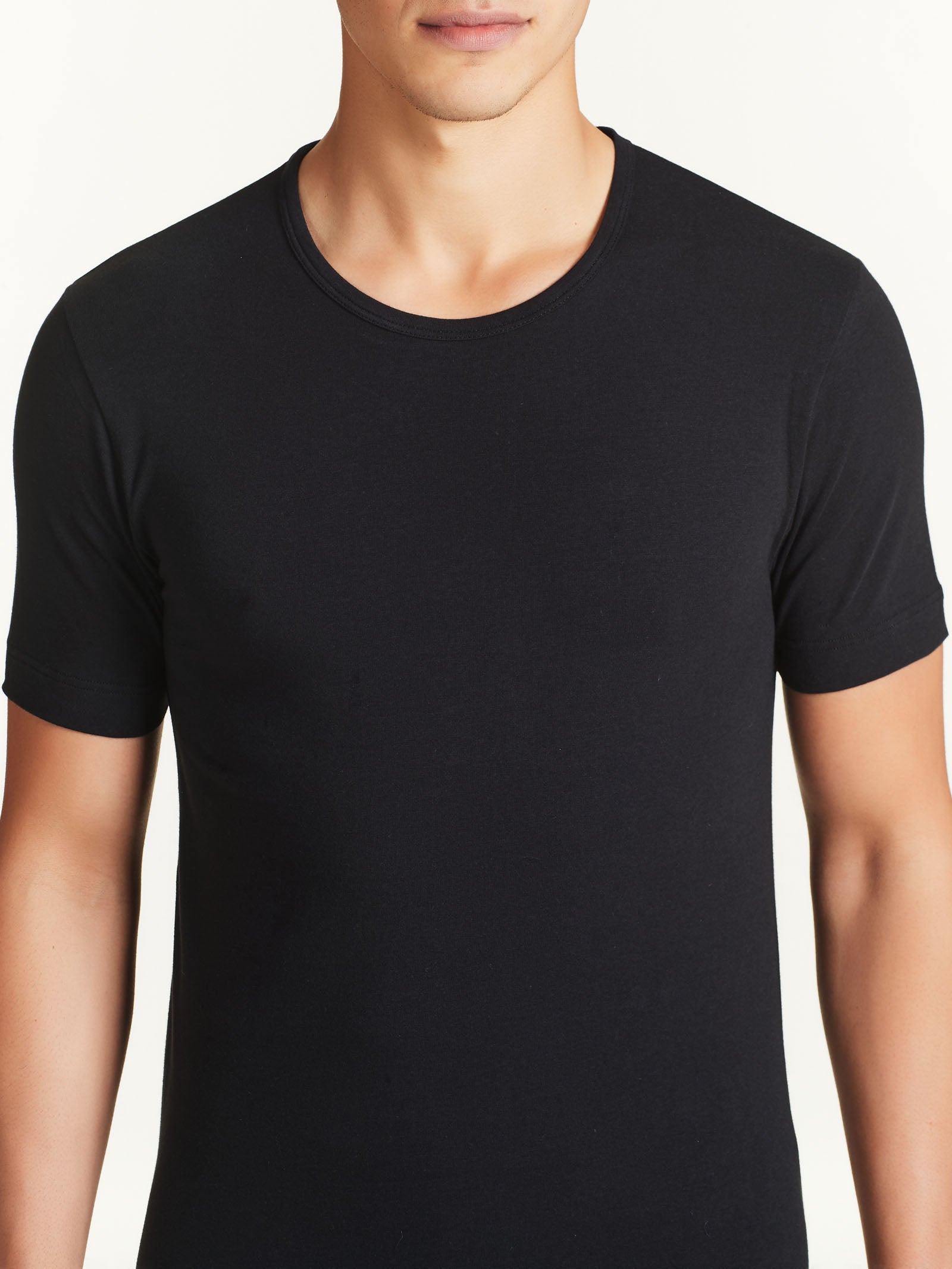 Kurzärmeliges T-Shirt mit Rundhalsausschnitt aus Stretch-Baumwolljersey.