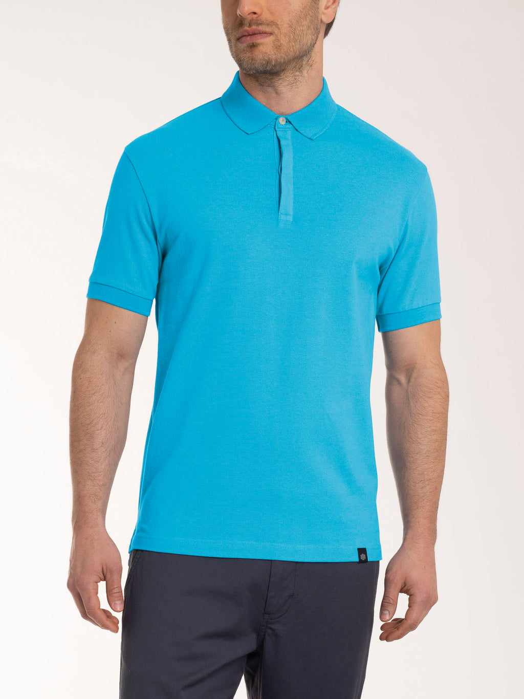 Das Herren-Poloshirt ist aus Stretch-Baumwoll-Piqué gefertigt, was es kühl, leicht und atmungsaktiv macht.