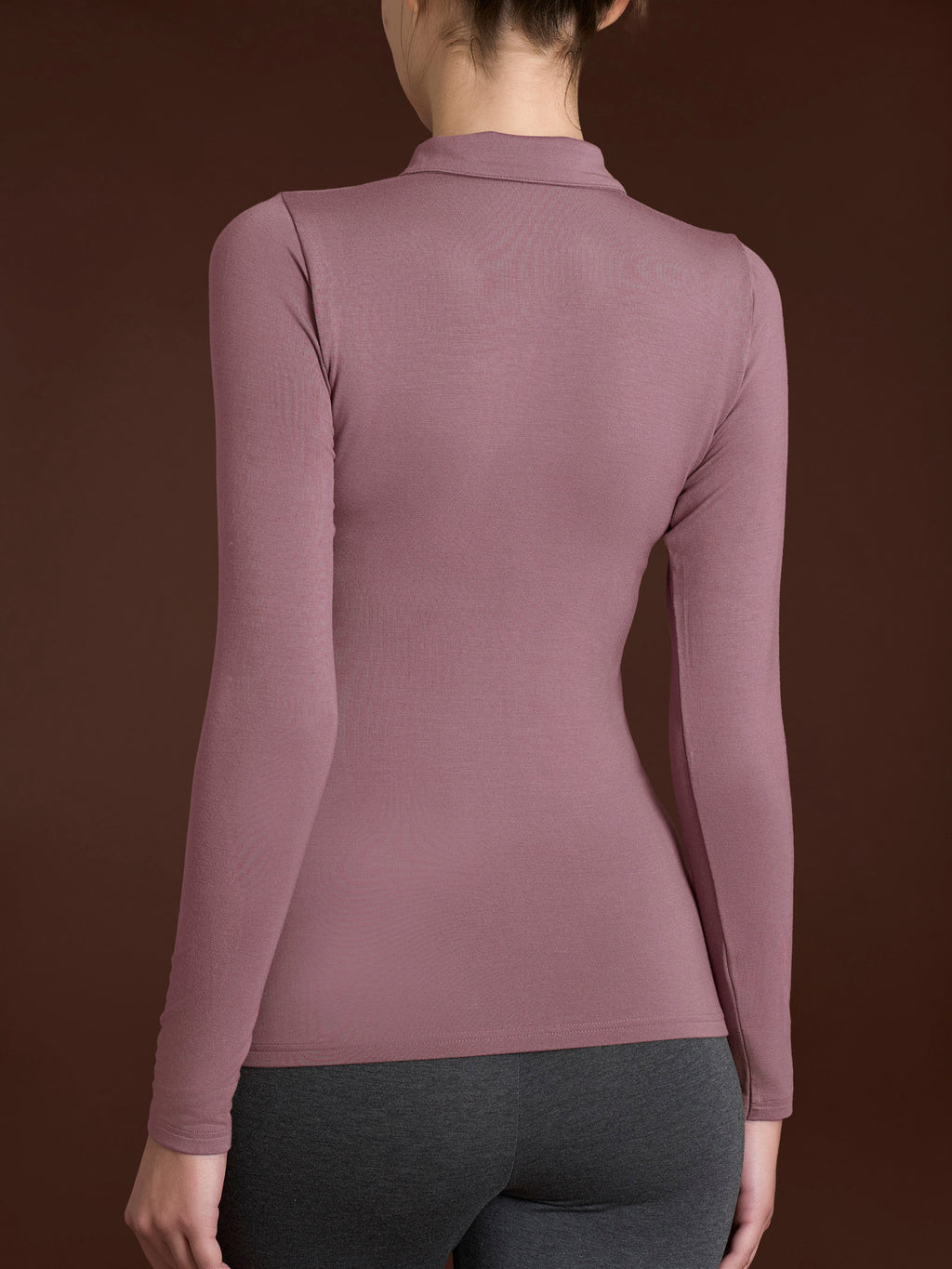 Langärmeliges Damen-Poloshirt aus ecoviscose, einer weichen und warmen Stretch-Viskose.