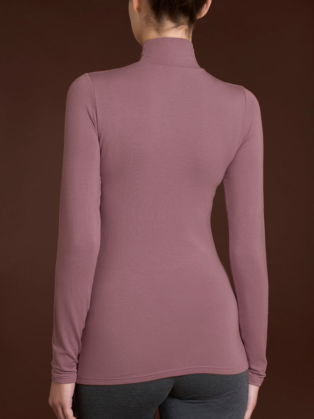 Langärmeliger Damen-Rollkragenpullover aus Eco viscosa, einer weichen und warmen Stretch-Viskose.