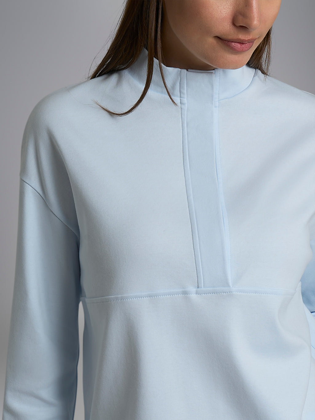 Die unifarbene Tunika hat einen raffinierten Stehkragen mit Serafino-Öffnung und fünf verdeckte Knöpfe für einen gepflegten Look. Die langen Ärmel, die praktischen Manschetten und die kleinen Seitenschlitze am unteren Ende sorgen für einen fließenden Sitz und mehr Bewegungsfreiheit.