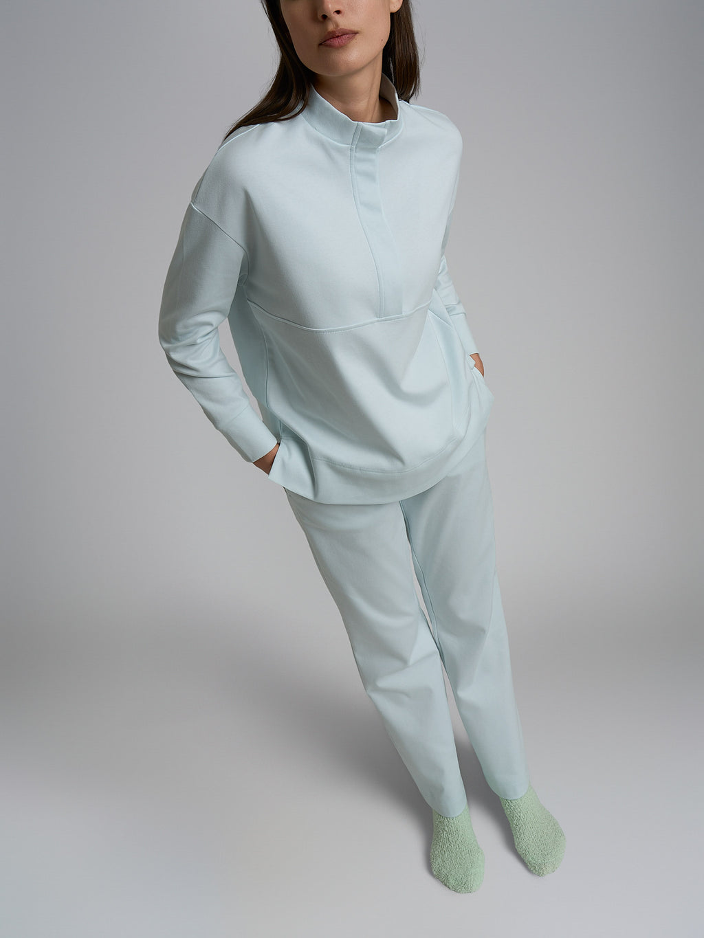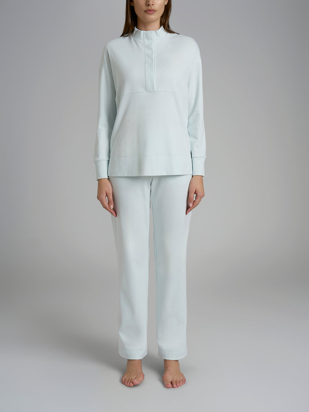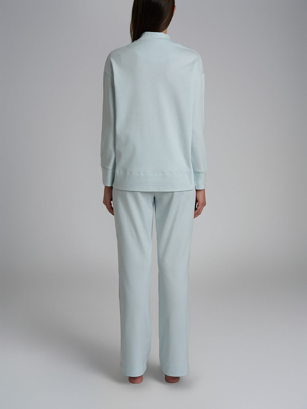 Erhältlich in einer Auswahl weicher und beruhigender Pastelltöne, ist dieser Pyjama ideal für alle, die Komfort und einen unverzichtbaren Stil mit einem Hauch von dezenter Eleganz suchen.