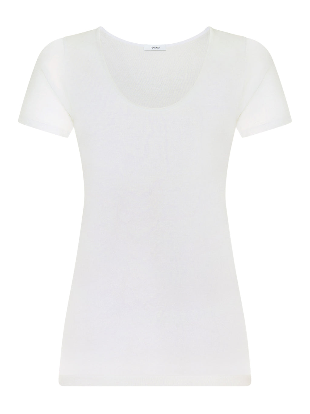 Kurzärmeliges T-Shirt mit Rundhalsausschnitt aus hochwertiger, hypoallergener Baumwolle im Flachstrick.