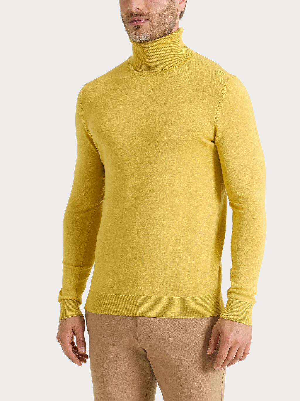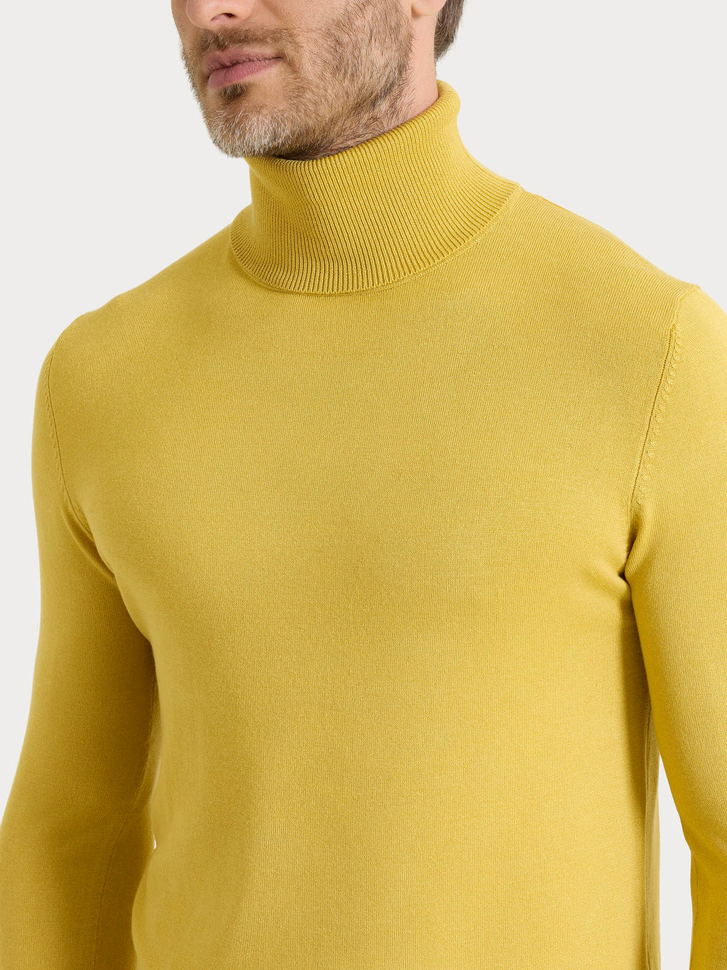 Modell mit rasiertem Strick-Roulè-Kragen, geeignet für alle Jahreszeiten, perfekt zum Tragen über oder unter anderen Kleidungsstücken.