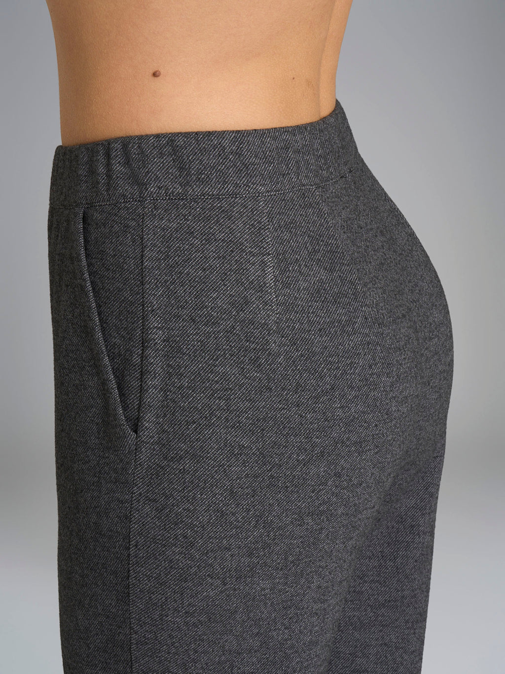 Die gerade Linie der Hose gleitet nahtlos vom Oberschenkel bis zum Knöchel, wodurch ein schlanker, fließender Effekt entsteht, der sich jeder Silhouette mit Leichtigkeit anpasst.