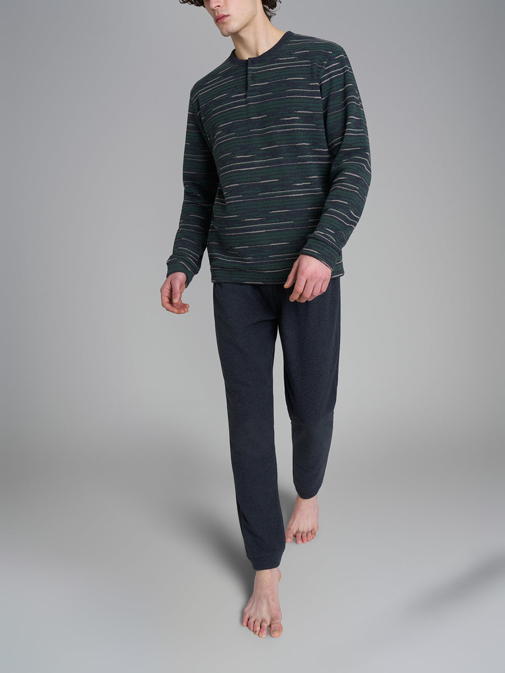 Pyjama Serafino aus warmem Eco cotton Fleece mit langen Ärmeln.