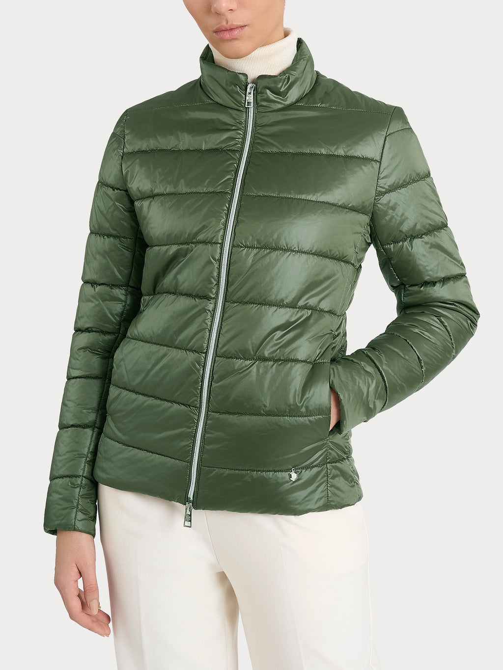 Langärmelige, leichte Piumerino-Jacke mit Wollwattierung für Damen, mit Reißverschluss, Mandarinenkragen und seitlichen Eingrifftaschen.