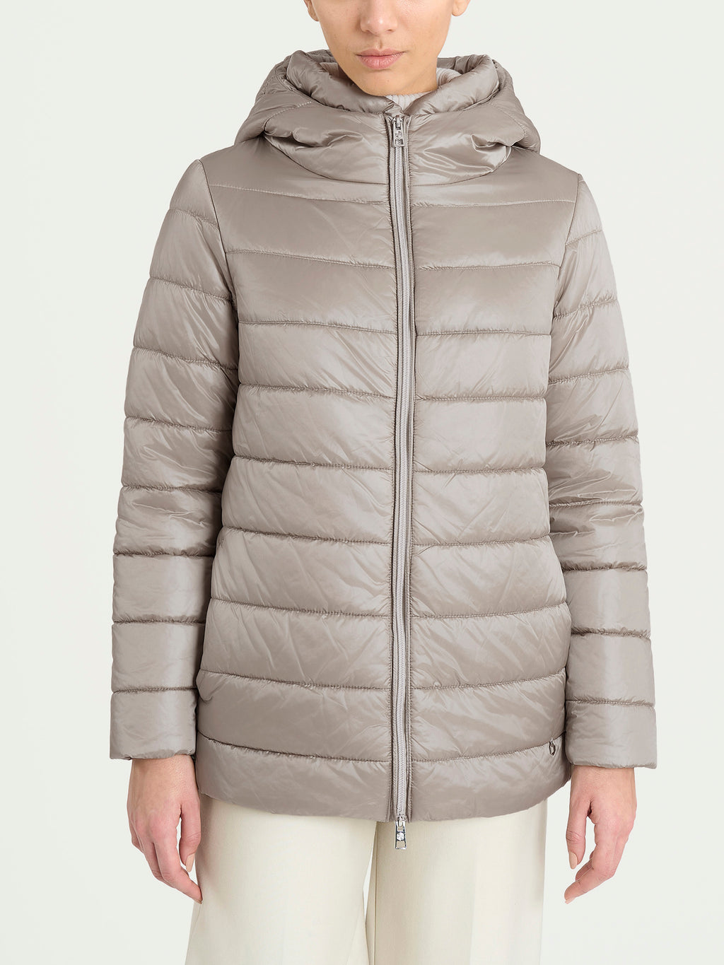 Diese moderne und helle Daunenjacke mit Glanzeffekt zeichnet sich durch ihre glänzende Oberfläche aus, die das Licht elegant einfängt. Diese glänzende Oberfläche verleiht dem Kleidungsstück ein modernes und dynamisches Aussehen, das selbst den einfachsten Outfits eine persönliche Note verleiht.