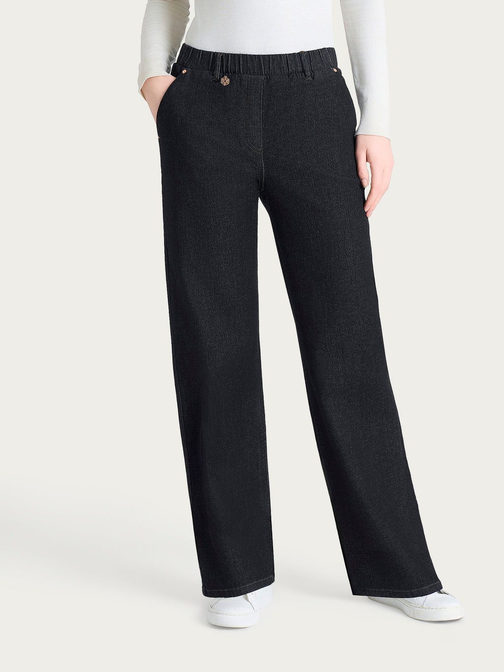 Weit geschnittene Jeans für Damen mit weitem Bein.