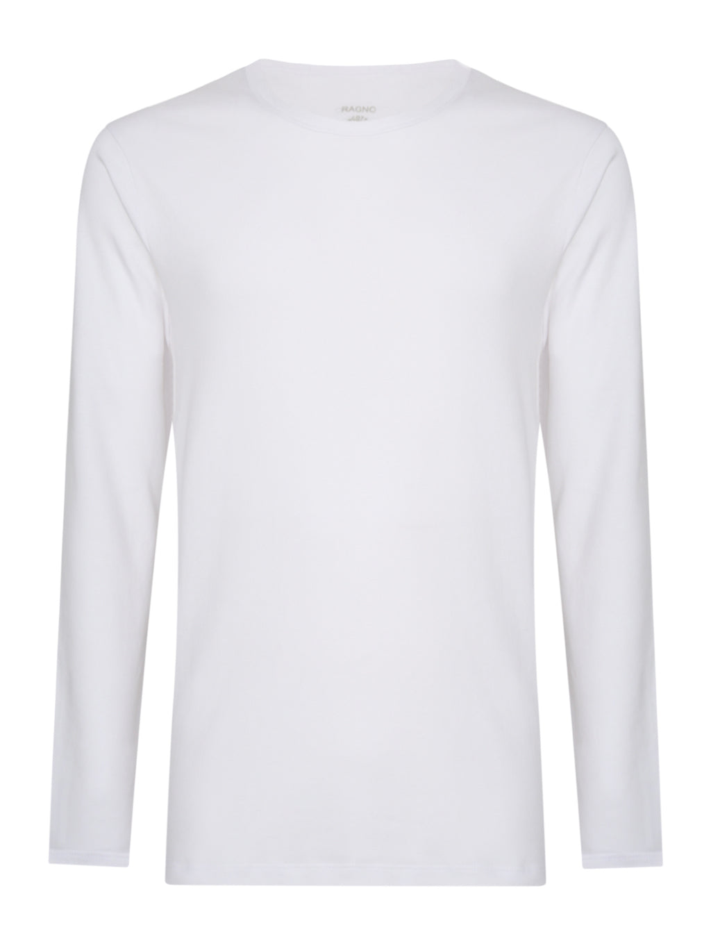 Langärmliges T-Shirt mit Rundhalsausschnitt aus der Interlock-Linie aus reinem Baumwoll-Interlock-Gewebe