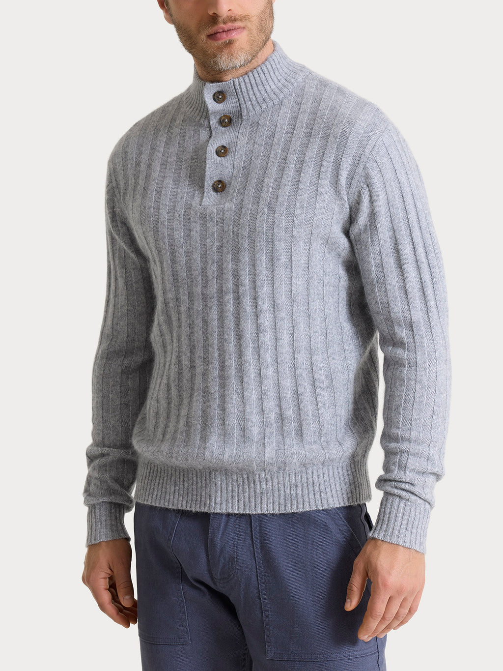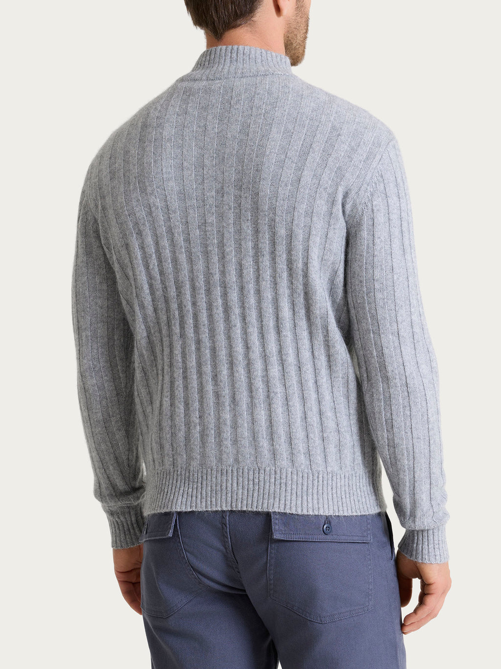 Er zeichnet sich durch einen 5x5 Flachrippstrick aus, der sich über die gesamte Oberfläche des Kleidungsstücks erstreckt und eine entscheidende und moderne Textur verleiht.