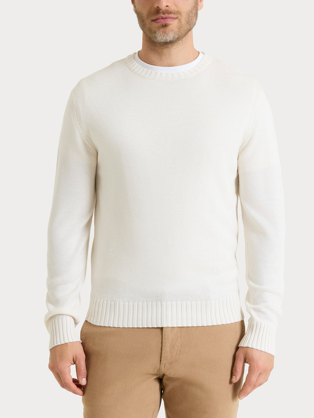 Herrenpullover mit Rundhalsausschnitt aus rasiertem Strick mit langen Ärmeln in 7-Gauge-Qualität.