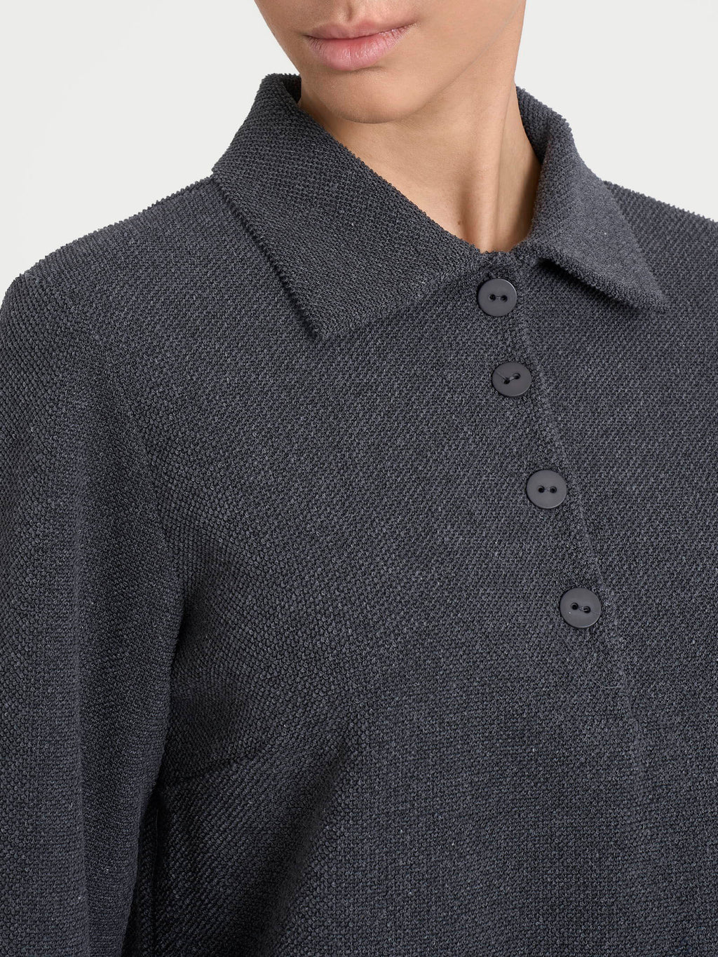 Dieses Kleidungsstück zeichnet sich durch einen Kragen mit vier praktischen Knöpfen aus, die das Tragen erleichtern und gleichzeitig ein wichtiges Stildetail darstellen.