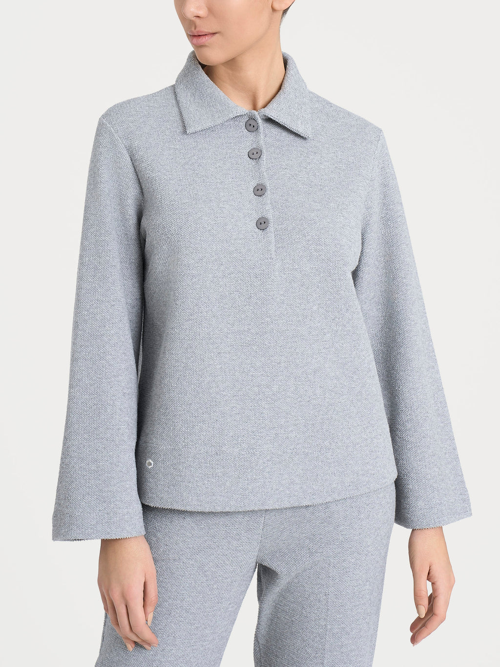 Dieses Kleidungsstück zeichnet sich durch einen Kragen mit vier praktischen Knöpfen aus, die das Tragen erleichtern und gleichzeitig ein wichtiges Stildetail darstellen.