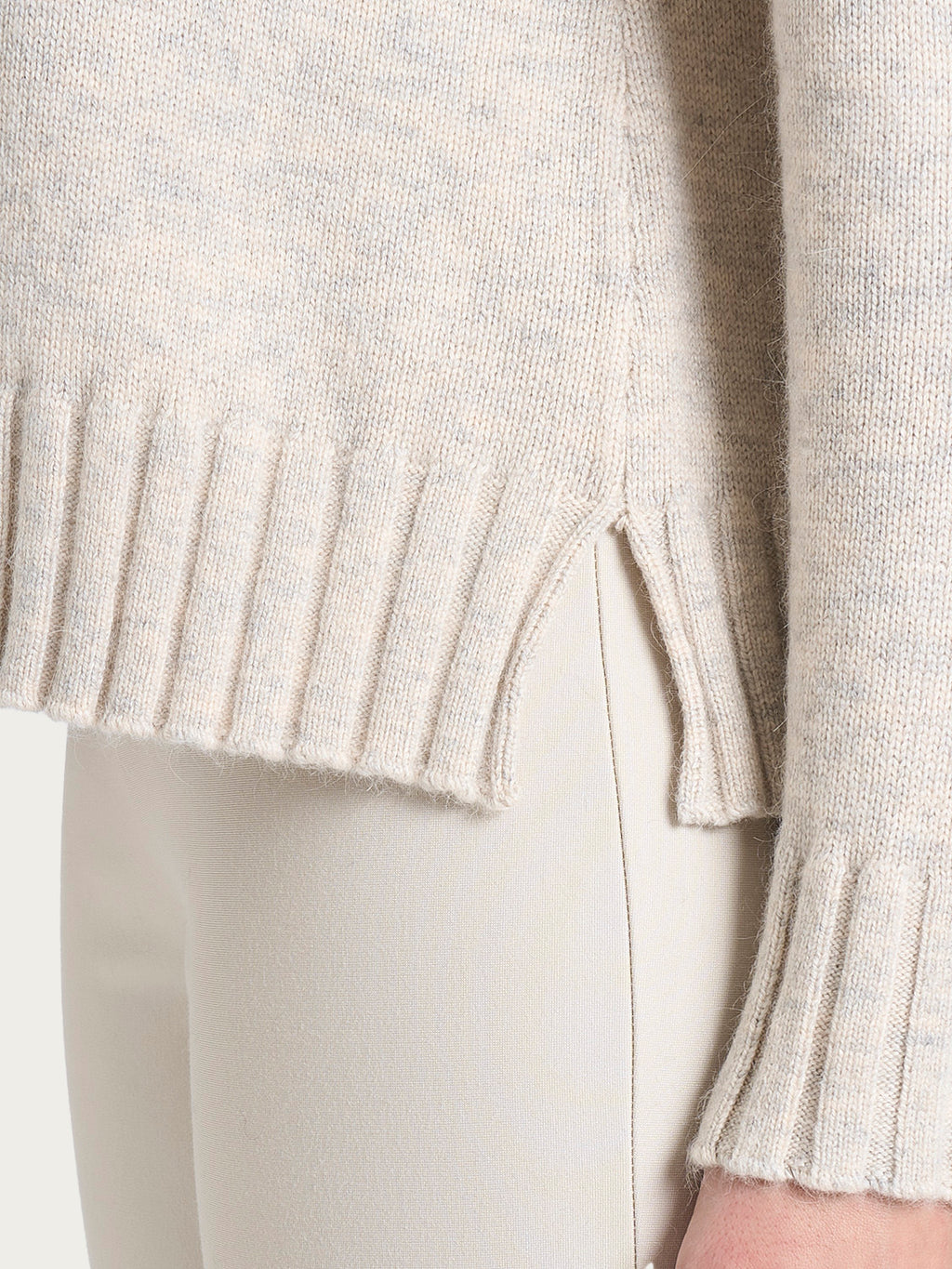 Damenpulli mit hohem Rundhalsausschnitt und langen Ärmeln.