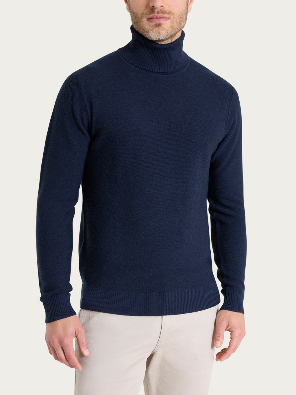 Herren-Rollkragenpullover aus reiner Wolle, gewebt in Stärke 12, extrem weich und warm.