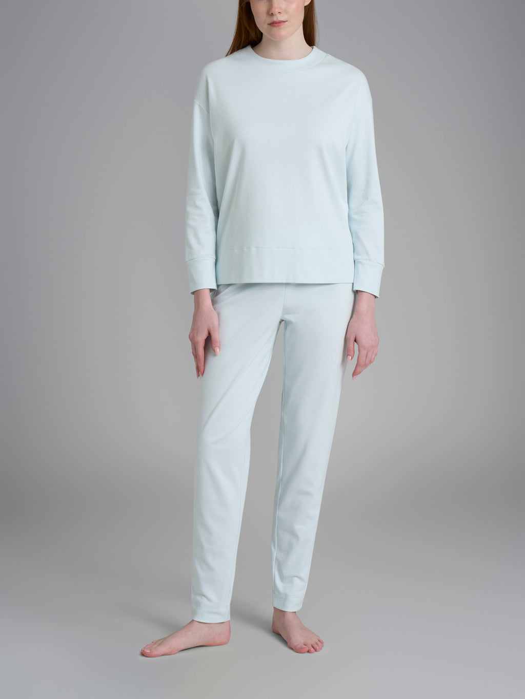 In einer raffinierten Palette von Pastelltönen kombiniert dieser Pyjama Weichheit und Liebe zum Detail in einem perfekten Gleichgewicht.