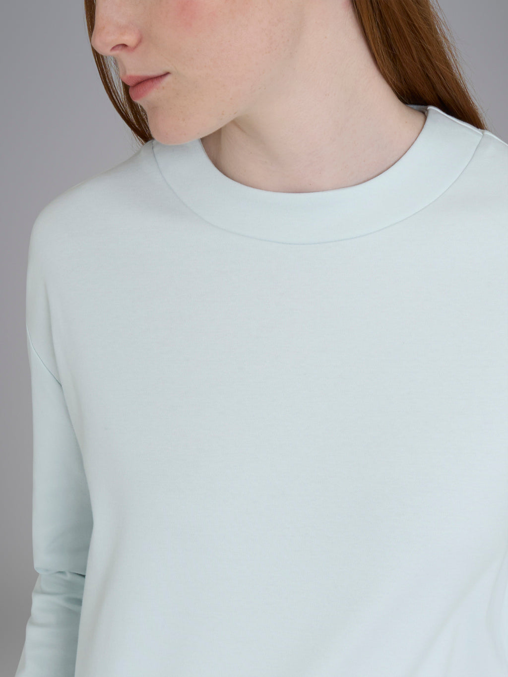 Die unifarbene Tunika zeichnet sich durch ihren raffinierten Rundhalsausschnitt aus, der unverzichtbar und vielseitig ist und selbst die einfachsten Looks diskret aufwertet.