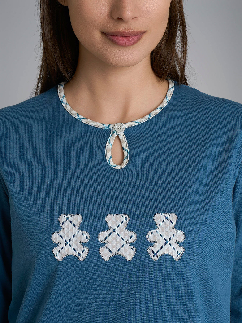 Die unifarbene Tunika hat einen Rundhalsausschnitt und ist mit einer großen Auswahl an farblich abgestimmten Motiven erhältlich. Es gibt sogar Teddybären, Putten, Katzen, süße Schriftzüge und Weihnachtsdekorationen, um jedes Stilbedürfnis für die Nacht zu befriedigen.