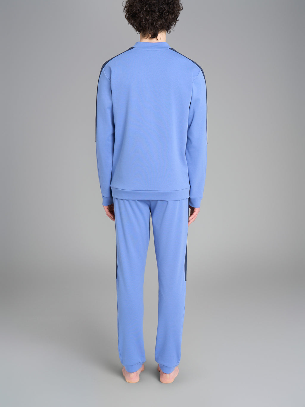 Pyjama mit V-Ausschnitt aus weichem, warmem Baumwoll-Interlock mit langen Ärmeln.