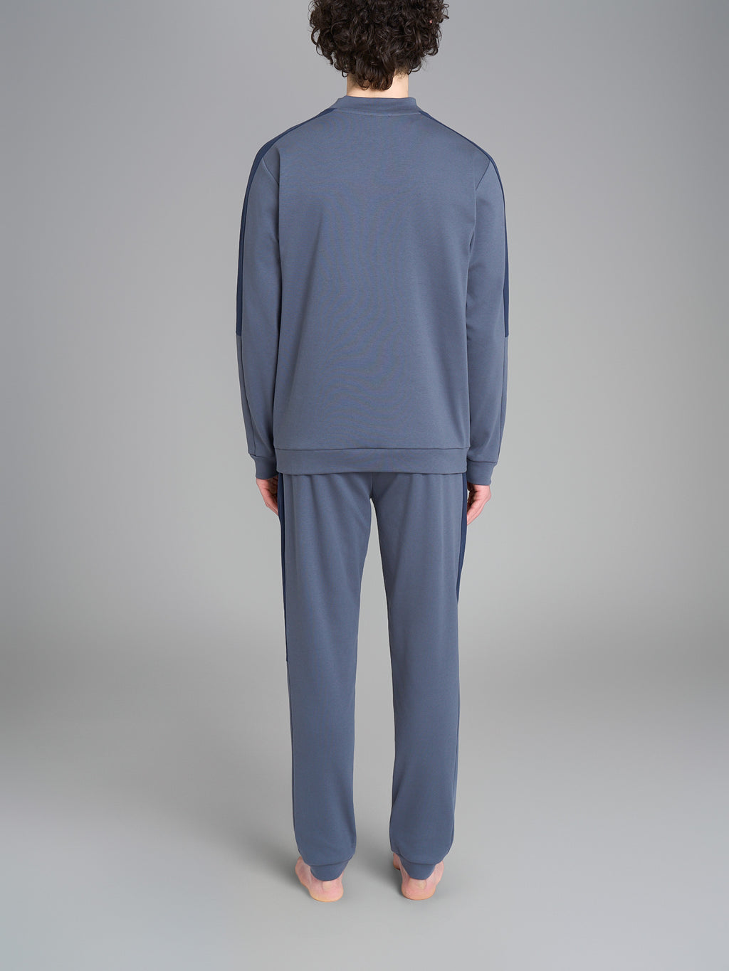 Pyjama mit V-Ausschnitt aus weichem, warmem Baumwoll-Interlock mit langen Ärmeln.