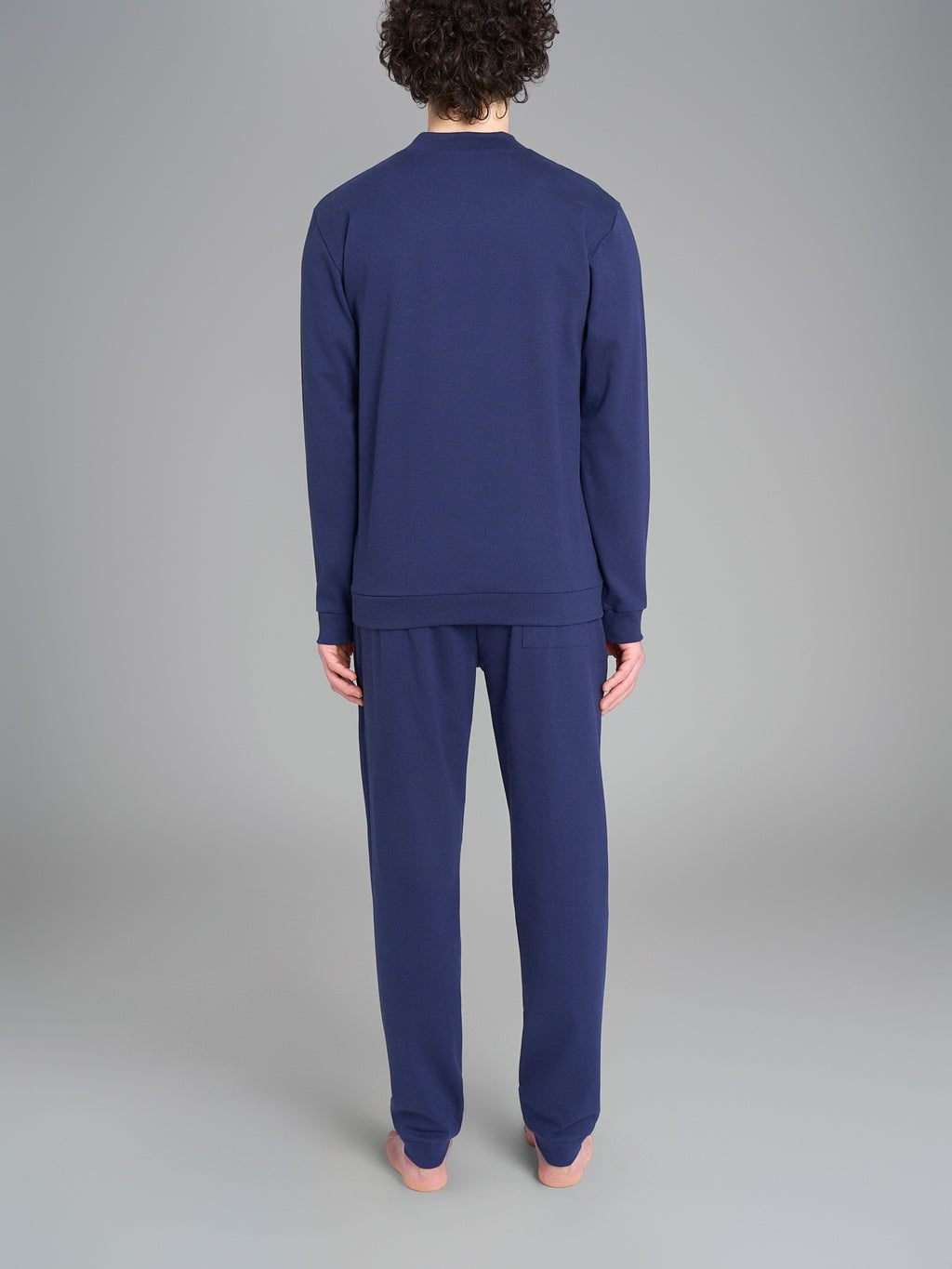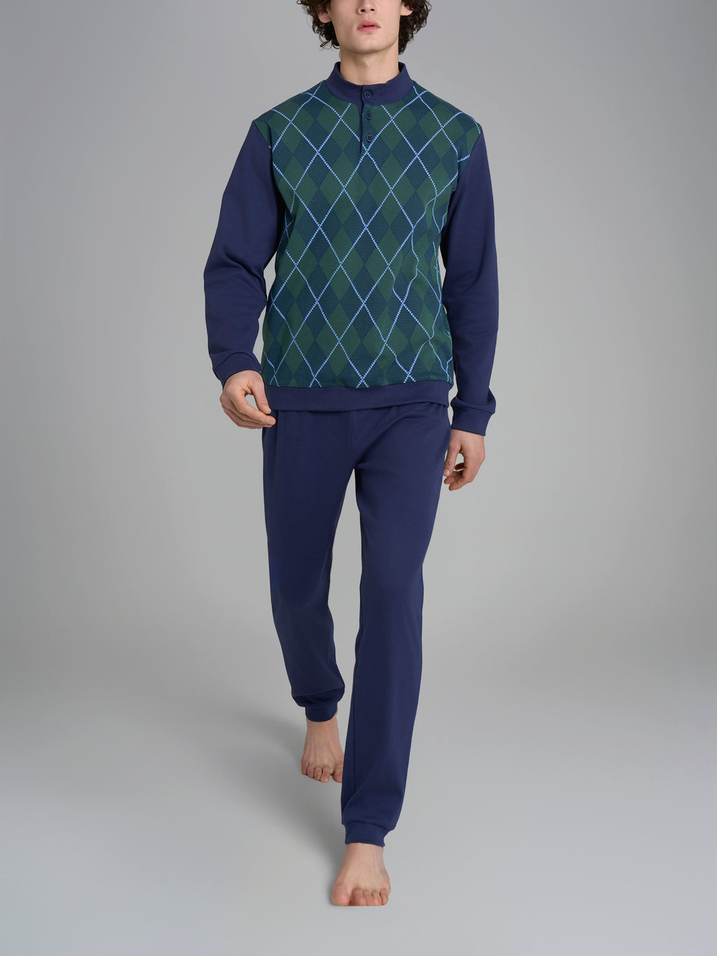 Pyjama mit Stehkragen aus weichem, warmem Baumwoll-Interlock mit langen Ärmeln.