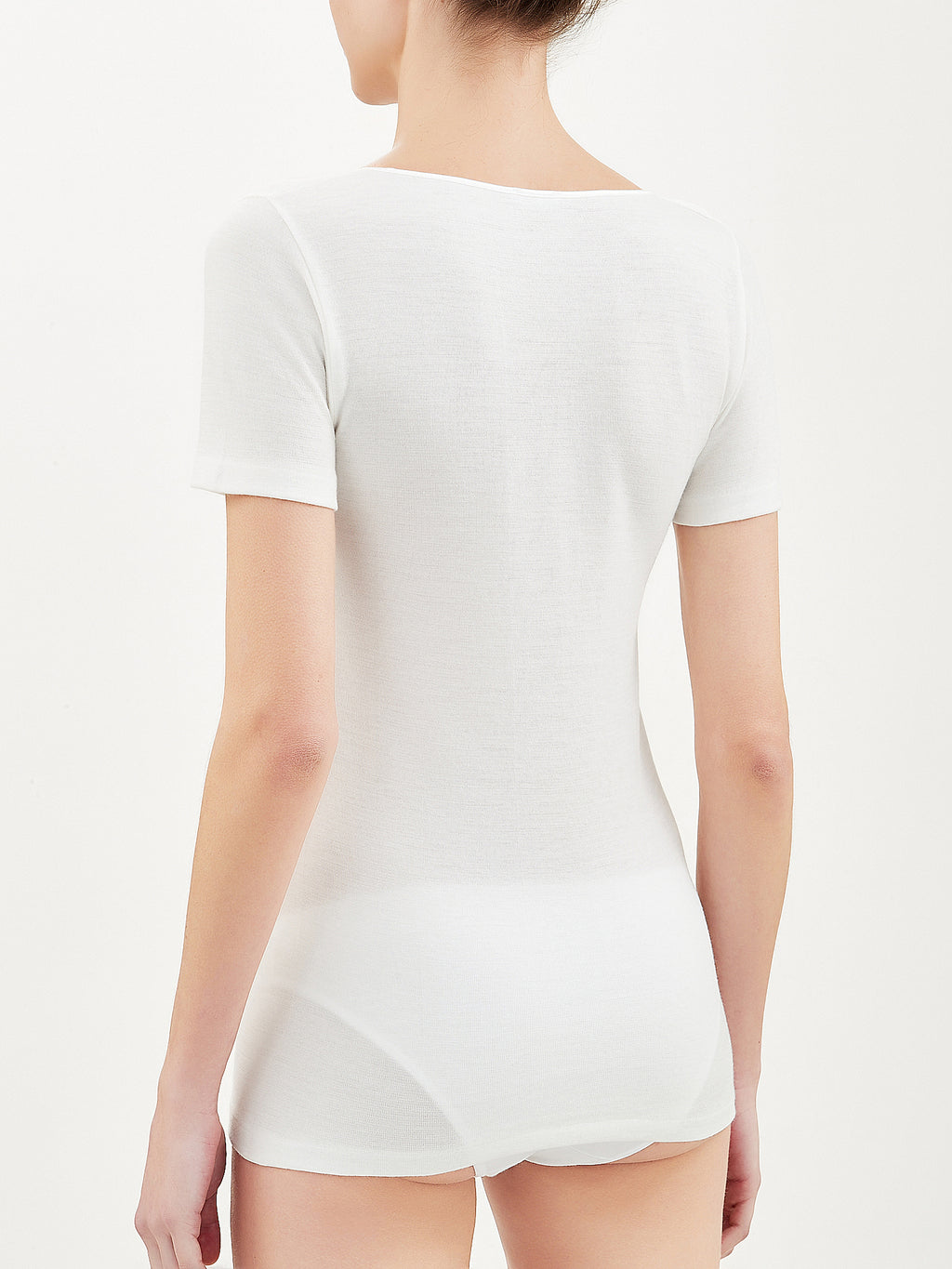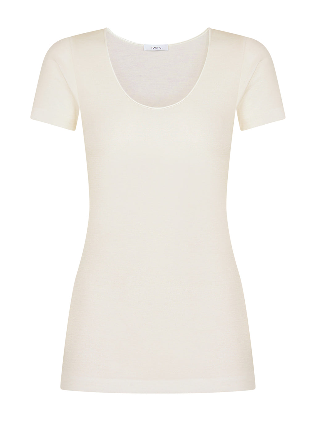 Kurzarm-T-Shirt mit Rundhalsausschnitt aus verstärkter Wolle auf der Außenseite und Baumwolle auf der Haut.