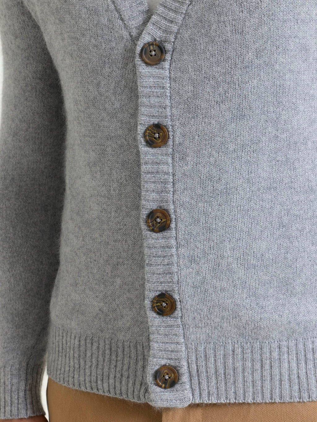 Offene Herrenstrickjacke aus rasiertem Strick mit langen Ärmeln aus feinem 5-Gauge-Gewebe.
