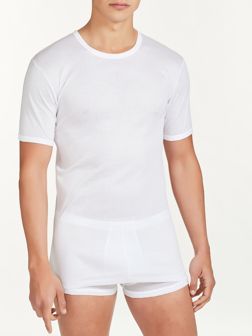Kurzärmeliges T-Shirt mit Rundhalsausschnitt aus reiner Filo di Scozia-Baumwolle, die sich durch ihre Weichheit, Festigkeit, ihren Glanz und ihre Atmungsaktivität auszeichnet.
