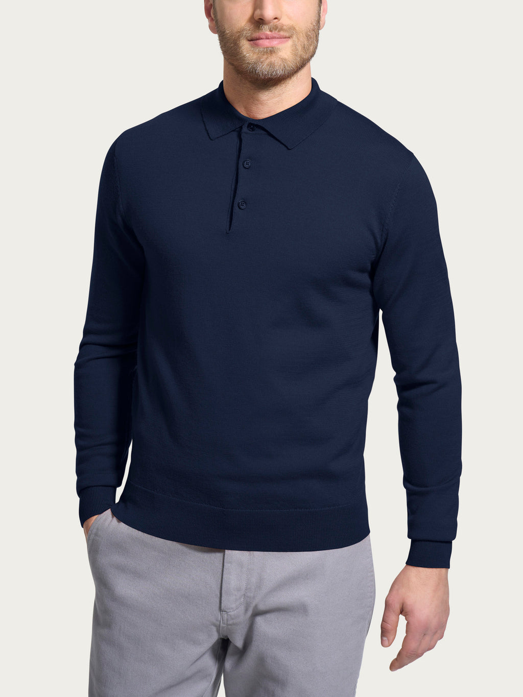 Langärmeliges Herren-Poloshirt aus reiner Merinowolle, gewebt in 12-Gauge, extrem weich und warm.