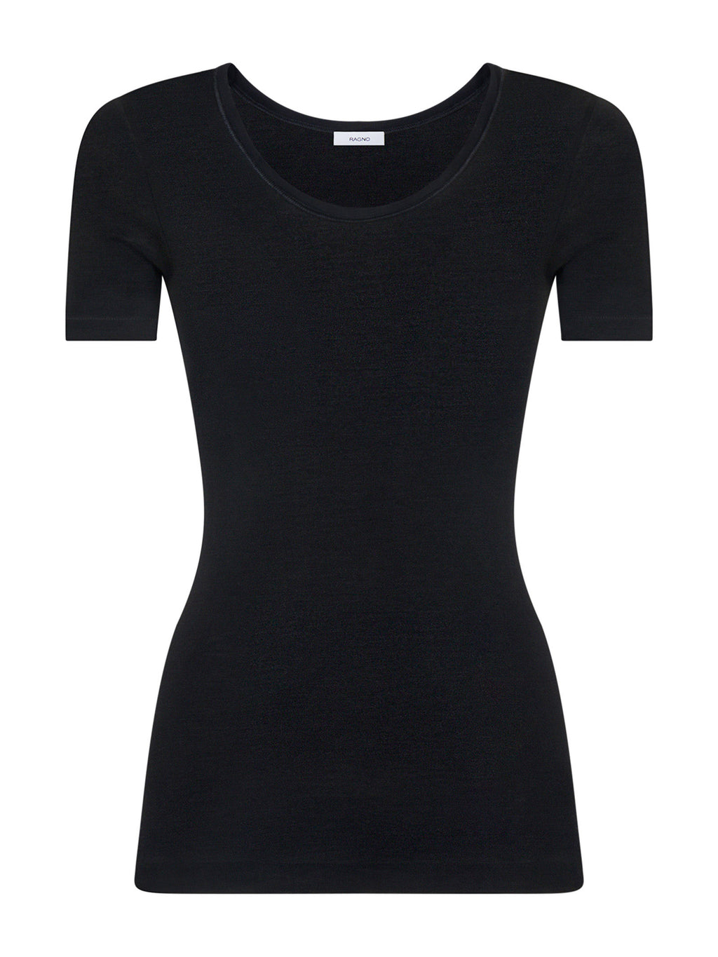 Kurzärmeliges T-Shirt mit Rundhalsausschnitt aus feiner, ultrafeiner, natürlicher Schurwolle.