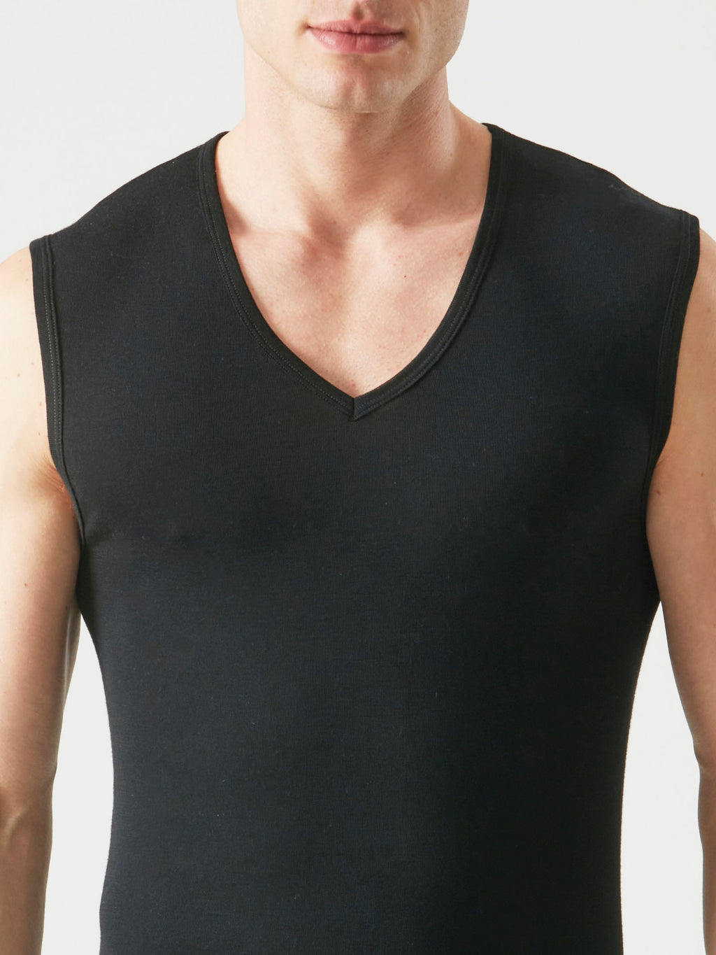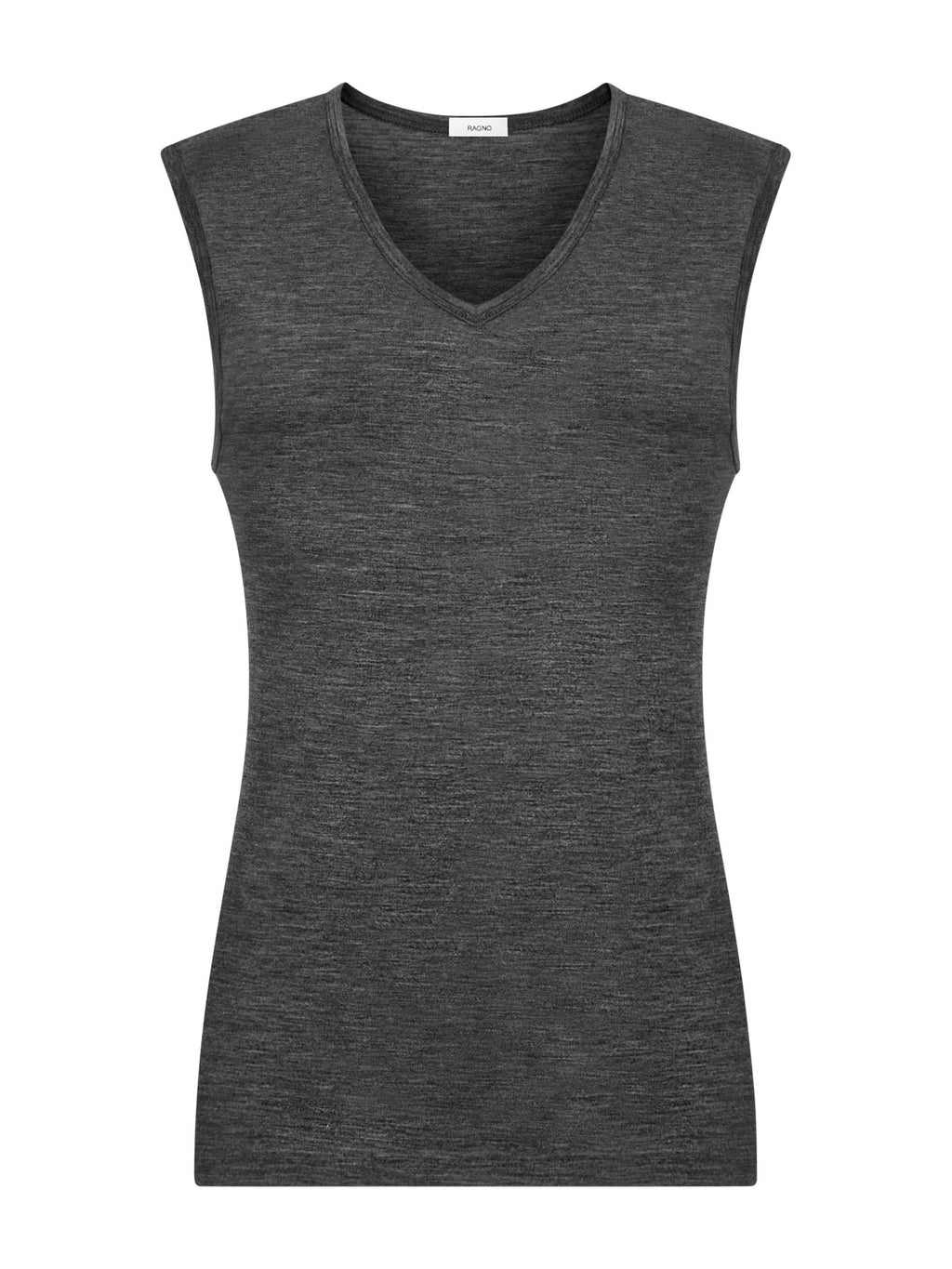 Ärmelloses T-Shirt mit V-Ausschnitt aus edlem Wolle-Seide-Gestrick