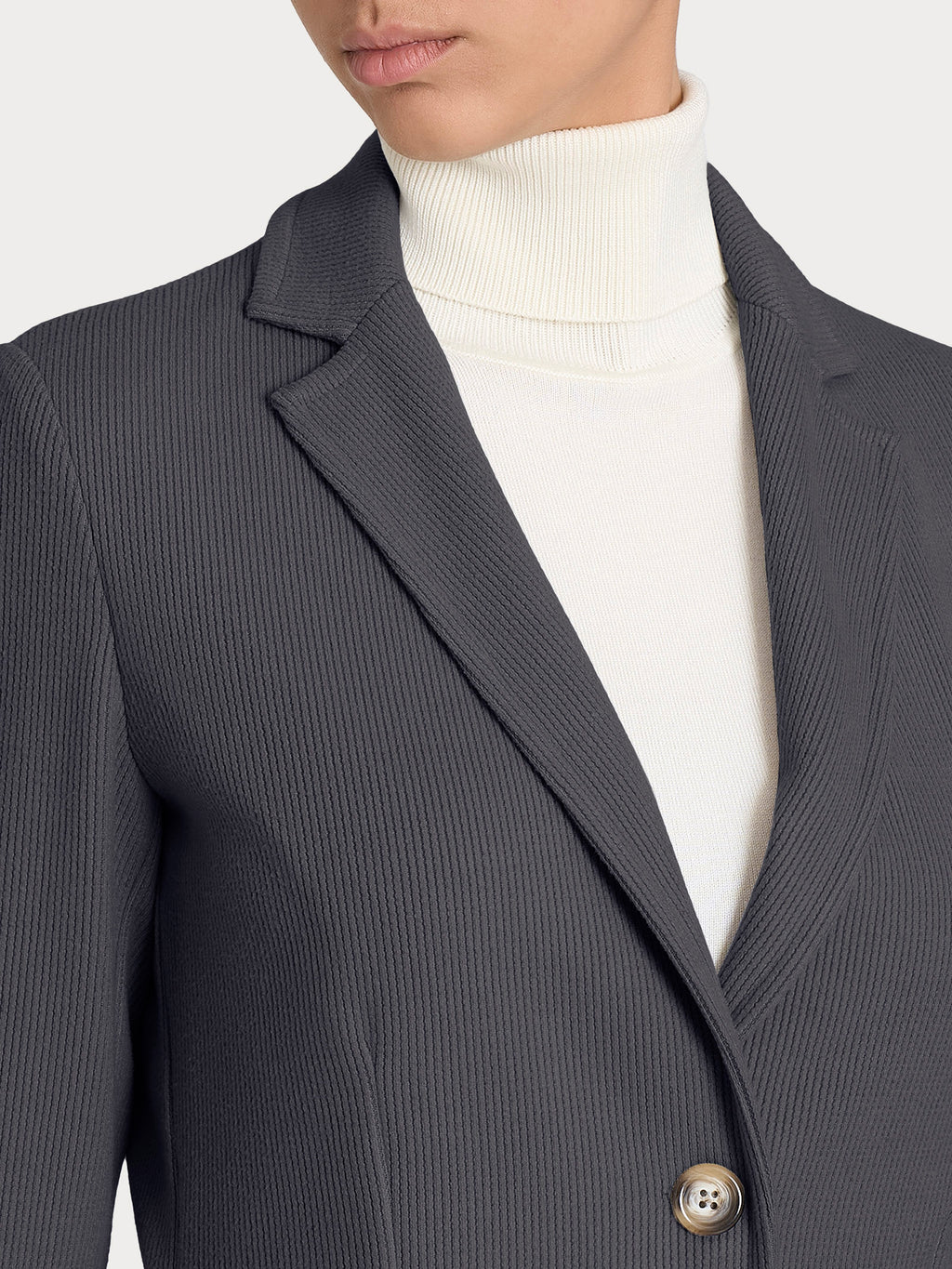 Unifarbener Kurzblazer mit Zwei-Knopf-Verschluss für Damen.