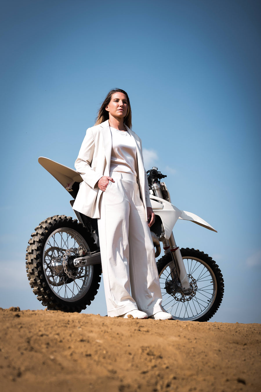 The project stems from a powerful and primordial image: the antithesis between earth and air. A precise moment, when the motorcycle lifts off the ground and everything remains suspended. It is there that the dust rises, that the roar becomes a breath, that matter becomes lightness.