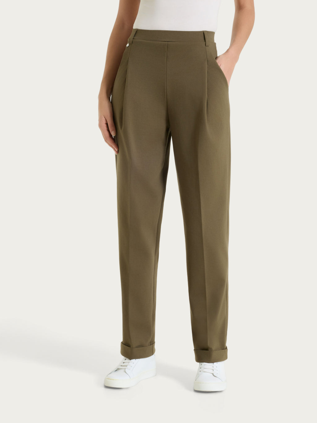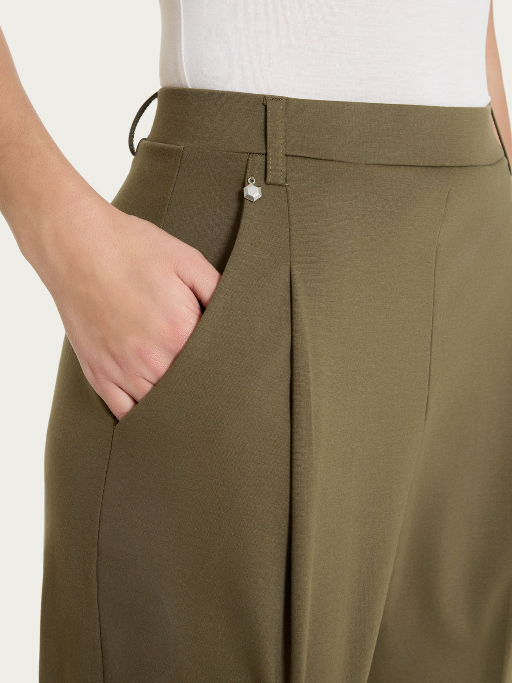 Carrot pants with pockets and darts in Compact Light - Dark Olive