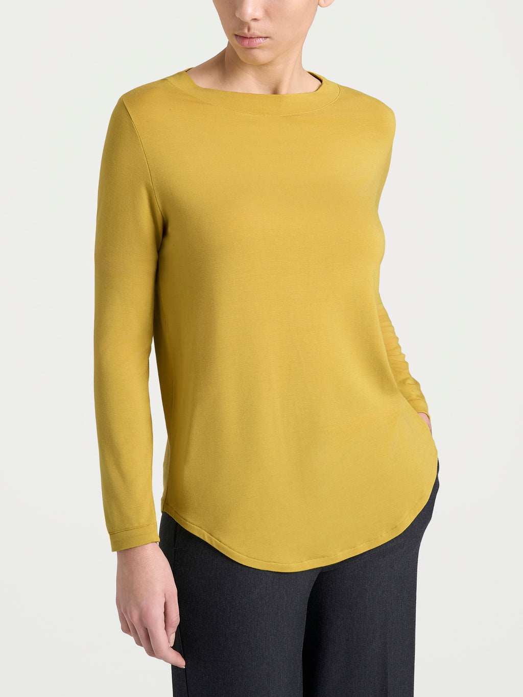 Women's boat-neck, long-sleeve t-shirt.